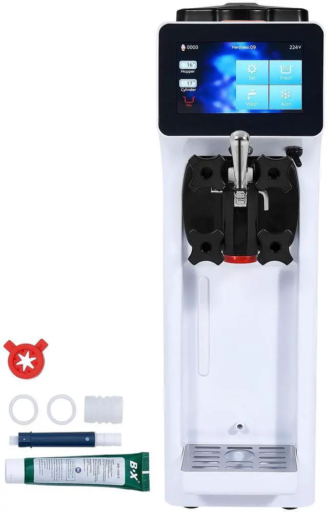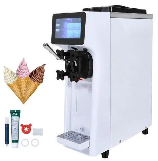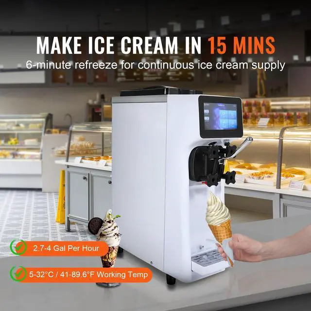 VEVOR Commercial Ice Cream Machine, 10.6 QT/H Yield, 1000W Single Flavor Countertop Soft Serve Ice Cream Maker, 4L Hopper 1.6L Cylinder, Touch Screen Auto Clean Pre-cooling, for Restaurant Snack Bar