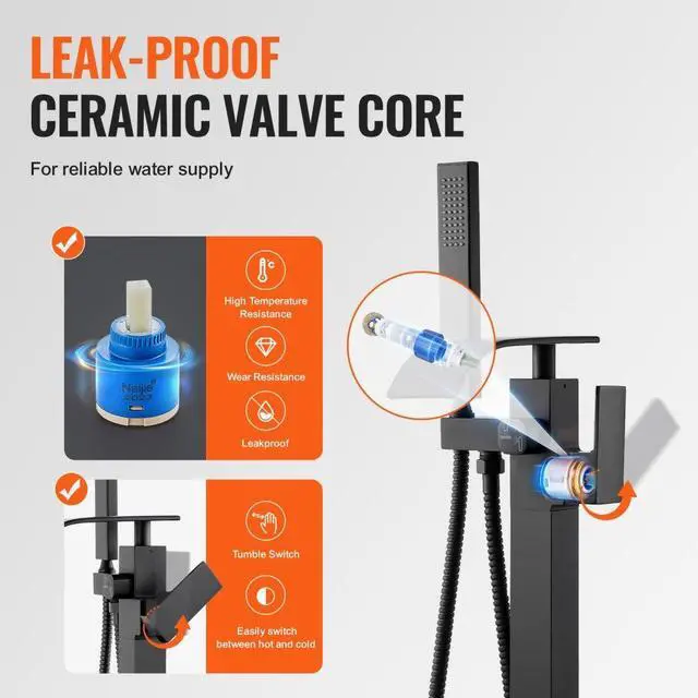 VEVOR Freestanding Bathtub Faucet, Floor Mount, Freestanding Tub Filler, Shower Mixer Taps, Two Water Modes, 360° Swivel Spout, for Bathing & Showering Pet Bathing Cleaning Drains Toilet Flushing