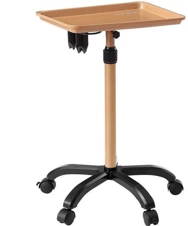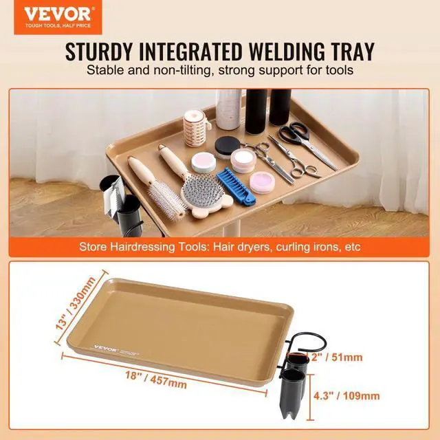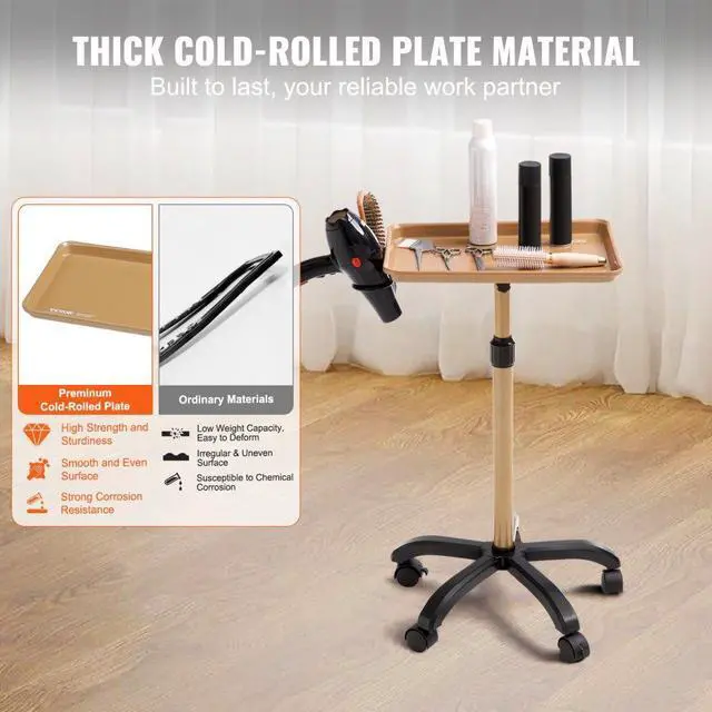 VEVOR Salon Tray Cart, 30"-43" Height Adjustable Rolling Salon Tray, Cold-rolled Plate Tattoo Tray with 5 Wheels (2 Lockable) for SPA Barber Clinic, Gold & Black