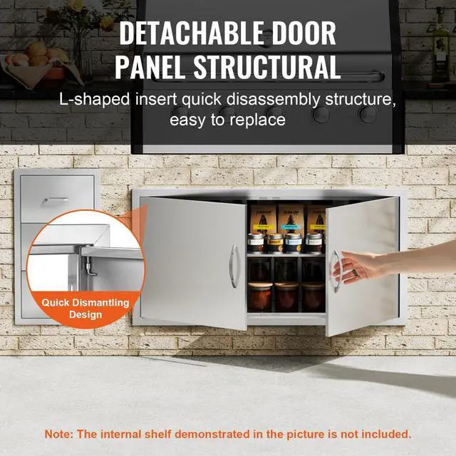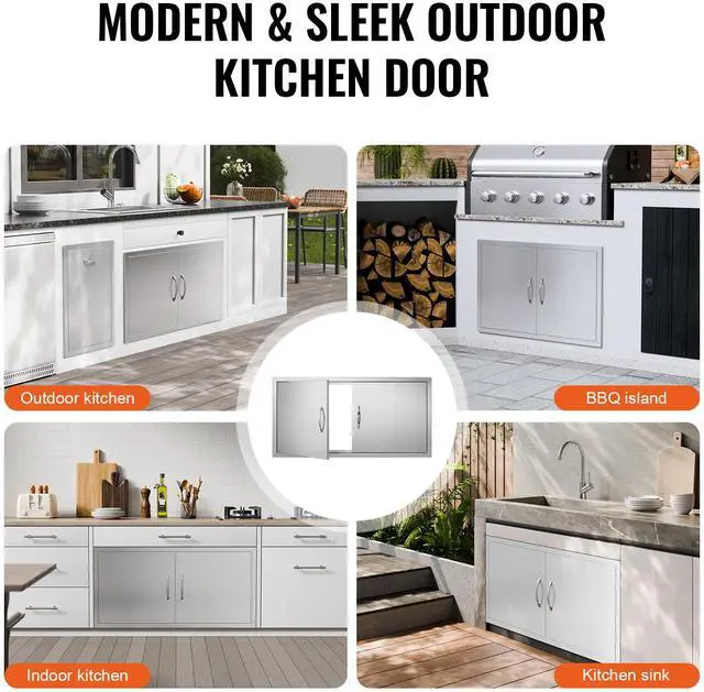 VEVOR BBQ Access Door, 42W x 21H Inch Double Outdoor Kitchen Door, Stainless Steel Flush Mount Door, Wall Vertical Door with Handles, for BBQ Island, Grilling Station, Outside Cabinet