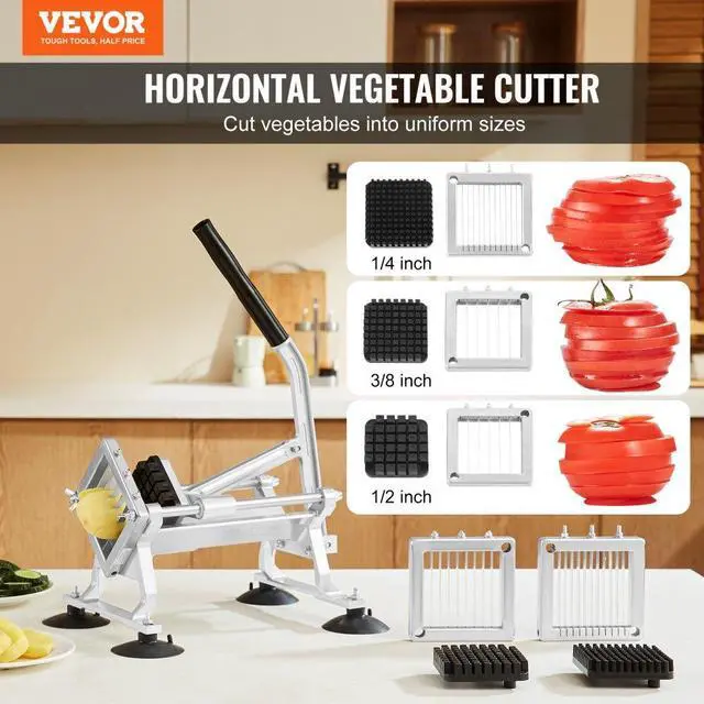 VEVOR Commercial Vegetable Slicer, 1/4"+3/8"+1/2" Fruit Slicer, Stainless Steel and Aluminum Alloy Vegetable Cutter Slicer Machine, Manual Slicer with Non-slip Feet, for Radishes, Onions, Potatoes