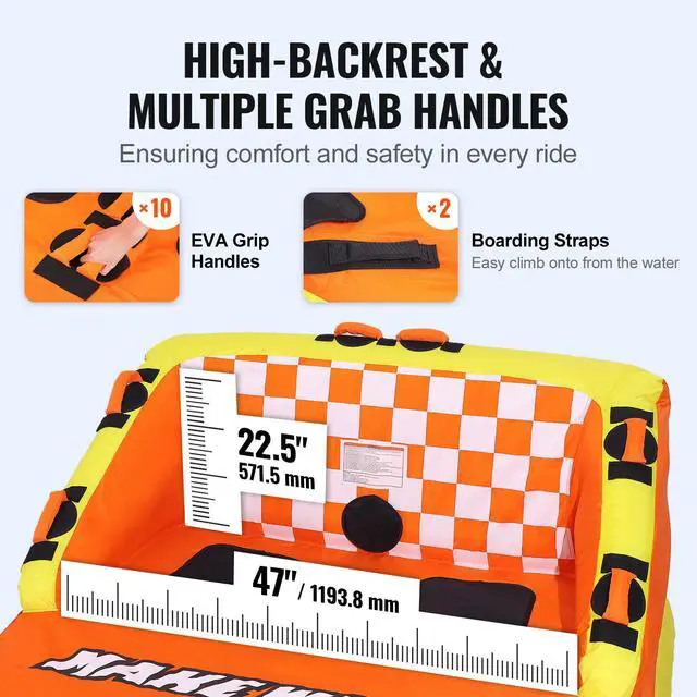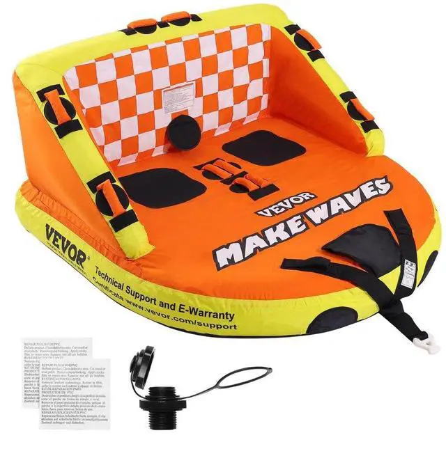 VEVOR Towable Tube for Boating, 1-2 Riders Inflatable Towable Tubes with Deck Seats and Backrest, 340 lbs Water Sport Tube for Boat to Pull, Full Nylon Cover, EVA Grab Handles and Speed Safety Valve