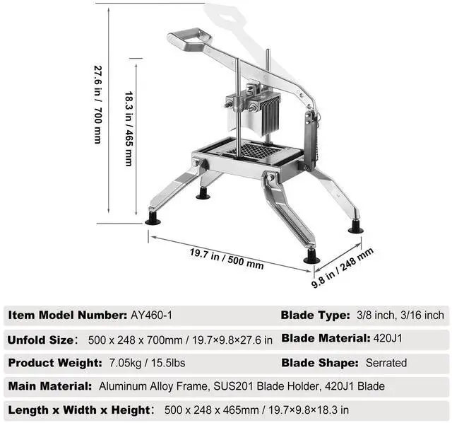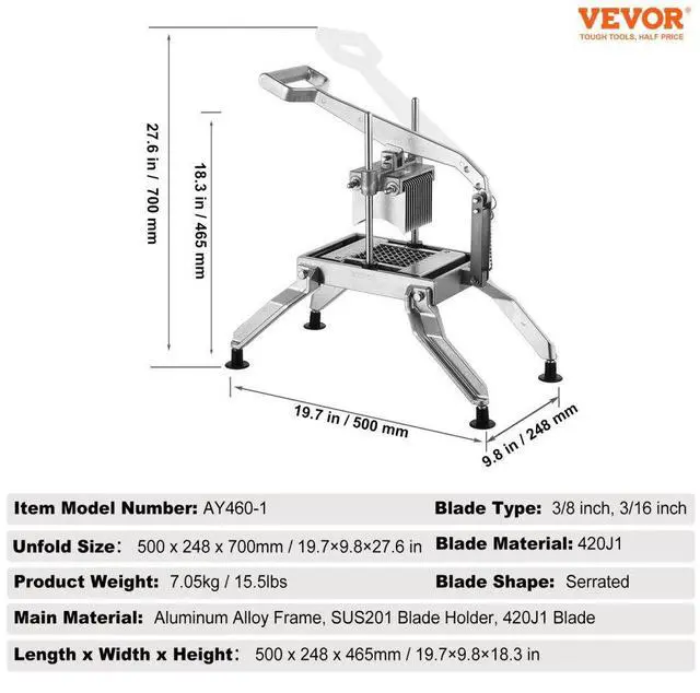 • VEVOR Commercial Vegetable Slicer, 3/8" and 3/16" Tomato Slicer, Stainless Steel and Aluminum Alloy Vegetable Cutter Slicer, Manual Tomato Slicer with Non-slip Feet, for Tomatoes, Potatoes, Onions