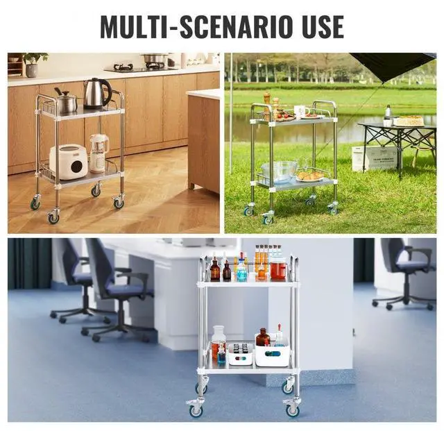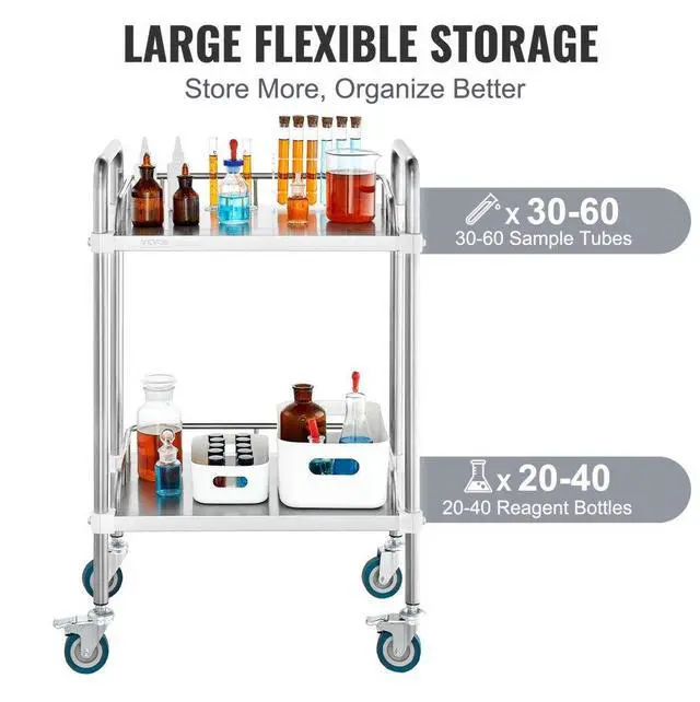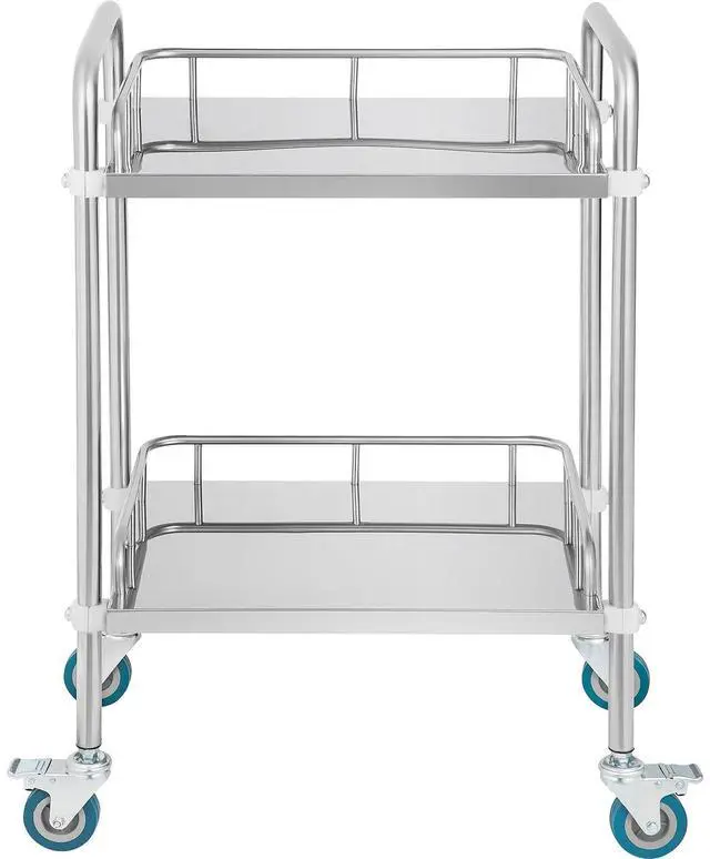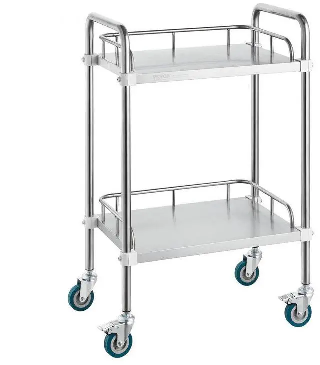 VEVOR Lab Rolling Cart, 2-Shelf Stainless Steel Rolling Cart, Lab Serving Cart with Swivel Casters, Dental Utility Cart for Clinic, Lab, Hospital, Salon, 15.16"x21.57"x34.06"