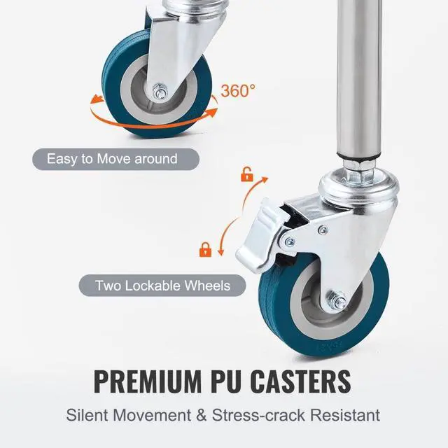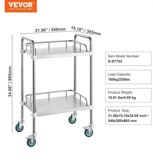 Wheel: Omnidirectional, Lockable,Item Model Number: K-ST753,Product Weight: 10.91 lbs/4.95 kg,Material: Stainless Steel,Maximum Weight Capacity: 220 lbs/100 kg,Layer: 2,Product Size: 15.16x21.57x34.06 inch/385x548x865 mm