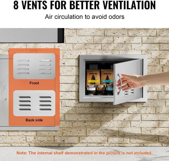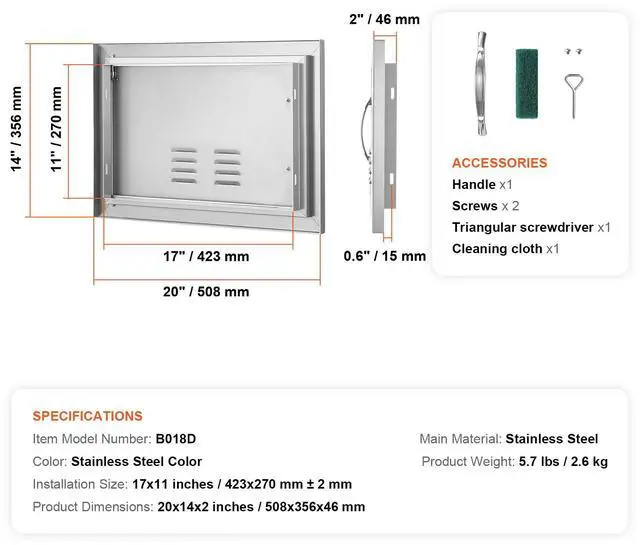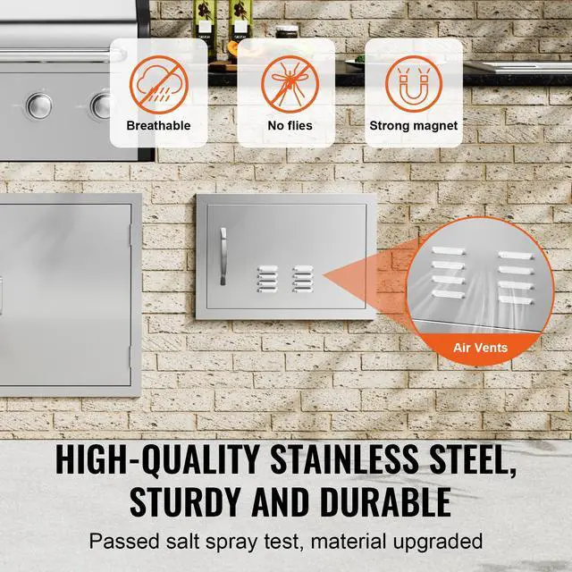 VEVOR BBQ Access Door, 20W x 14H Inch Single Outdoor Kitchen Door, Stainless Steel Flush Mount Door, Wall Vertical Door with Handle and vents, for BBQ Island, Grilling Station, Outside Cabinet