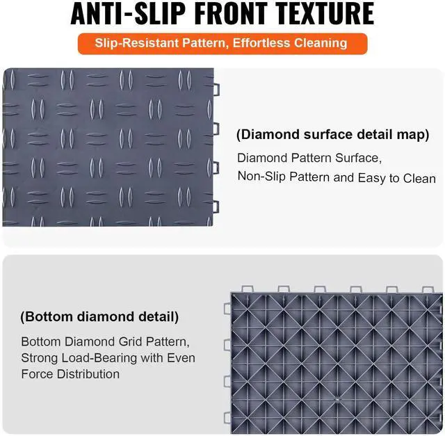 VEVOR Garage Tiles Interlocking, 12 x 12 x 0.53 inch 50 Pack Garage Floor Covering Tiles, Non-Slip Double-Sided Texture Garage Flooring Tiles, for Garages, Basements, Repair Shops, Graphite Gray