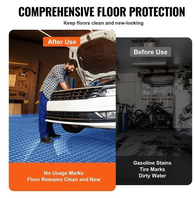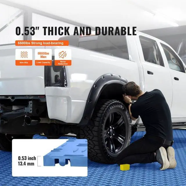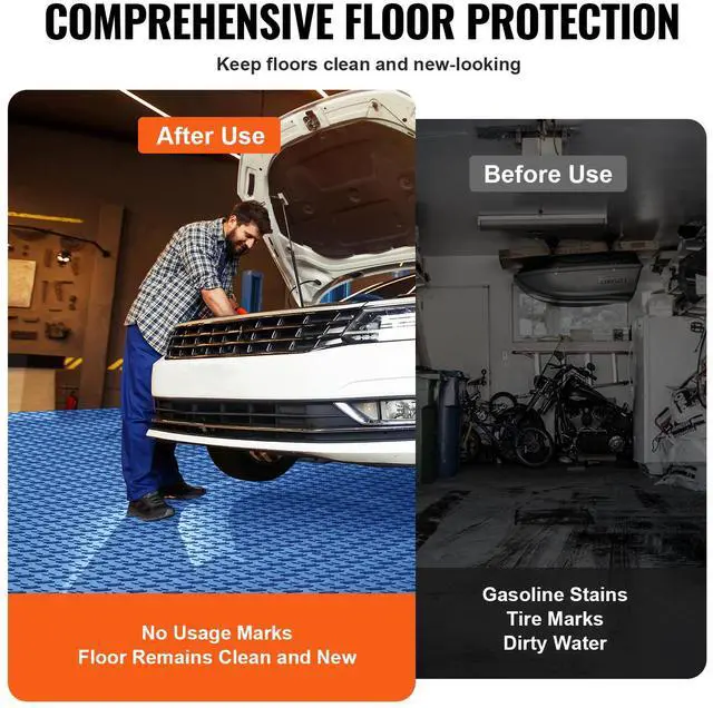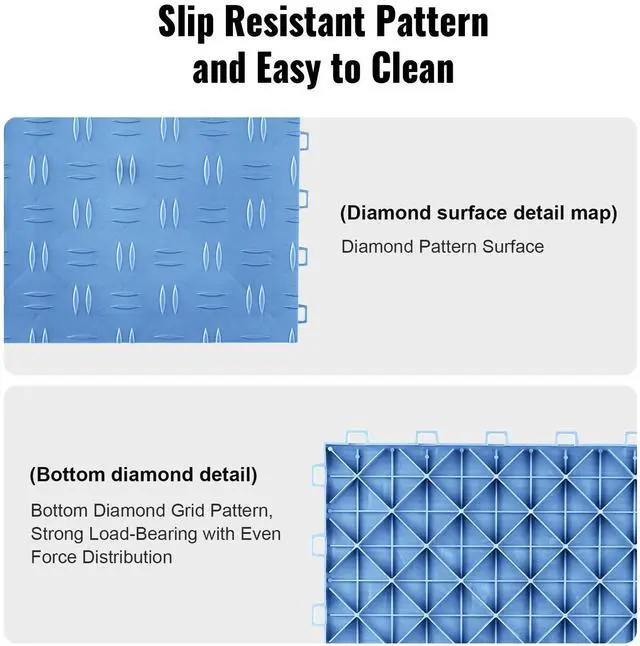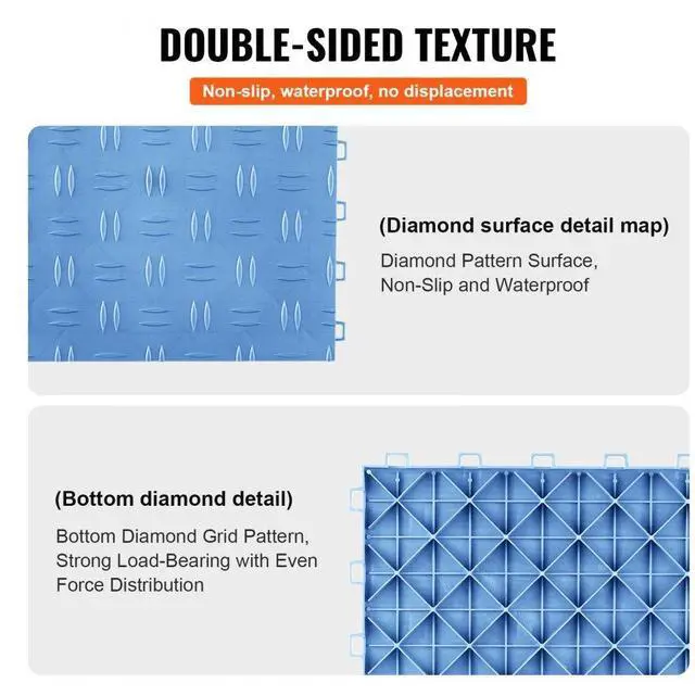 VEVOR Garage Tiles Interlocking, 12 x 12 x 0.53 inch 50 Pack Garage Floor Covering Tiles, Non-Slip Double-Sided Texture Garage Flooring Tiles, for Garages, Basements, Repair Shops, Blue