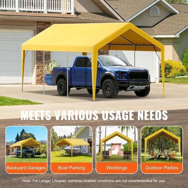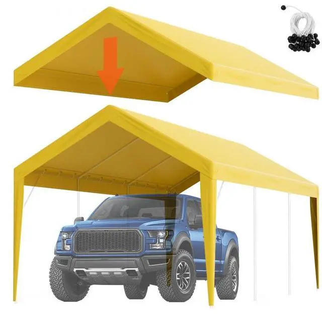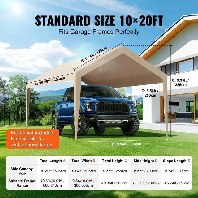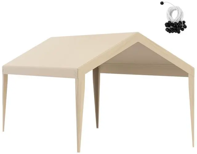VEVOR Carport Replacement Canopy Cover 10 x 20 ft, Garage Top Tent Shelter Tarp Heavy-Duty Waterproof & UV Protected, Easy Installation with Ball Bungees,Beige (Only Top Cover, Frame Not Include)