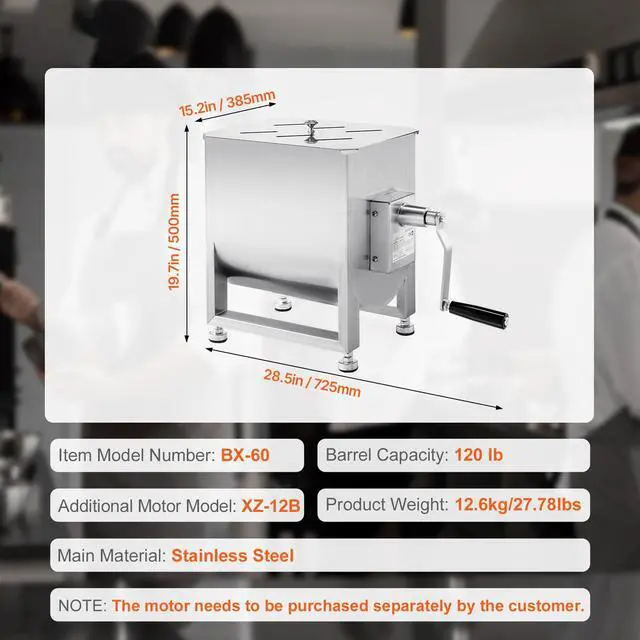 Manual Meat Mixer 120L Fixed Tank Mixing Max 120LB for Meat Sausage Mixer