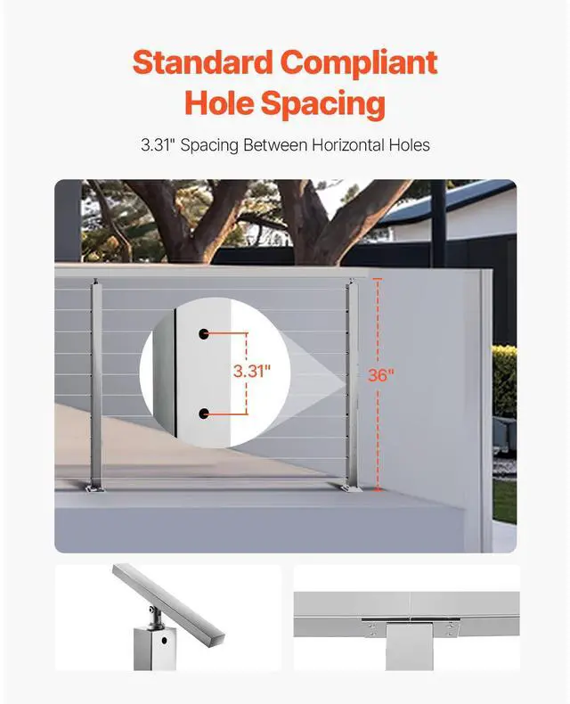 Cable Railing Post 36x2x2 In Horizontal-Hole Railing Post 1JZLGZXYS91466KZK001V0