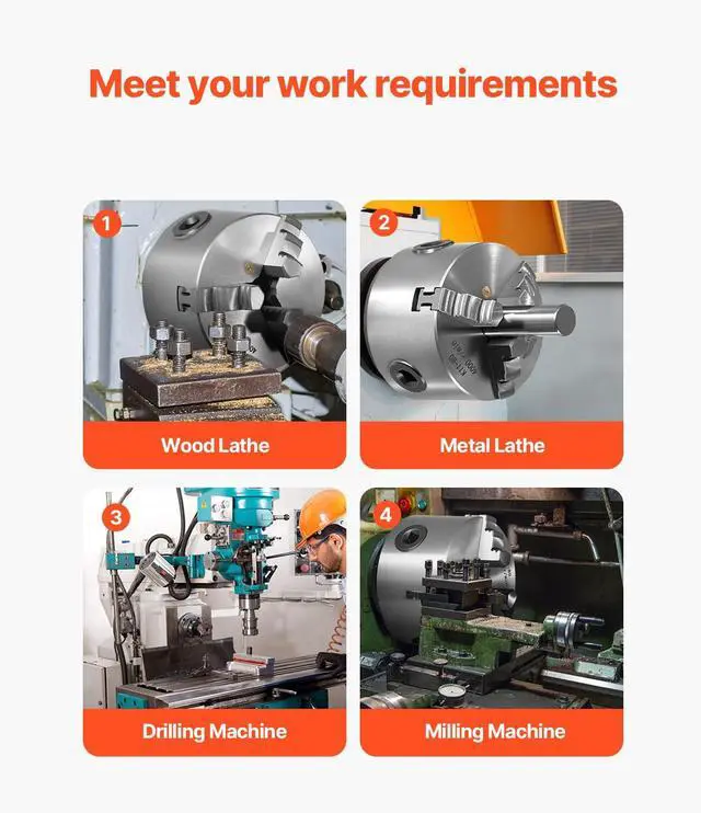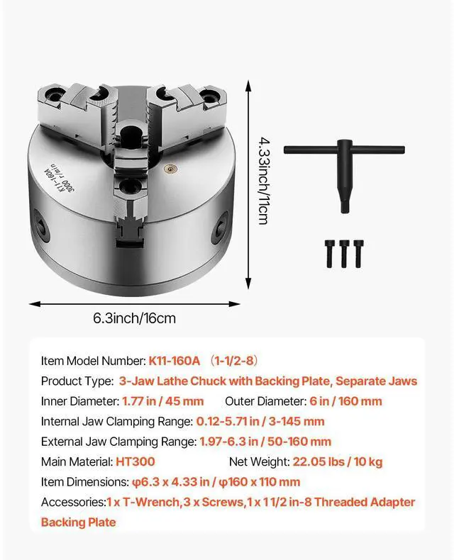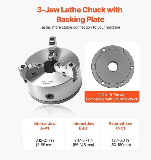 Product Type: 3-Jaw Lathe Chuck with Backing Plate, Separate Jaws