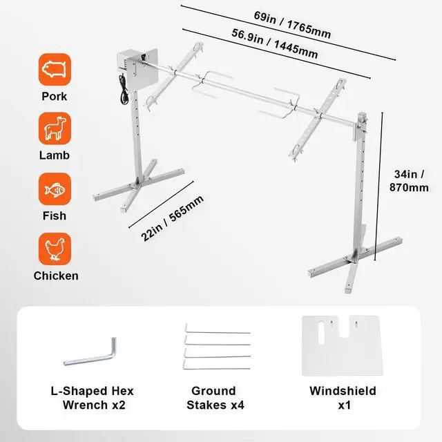 • VEVOR 56" Electric BBQ Rotisserie Grill Kit Stainless Steel Grill 132lb Pig Lamb