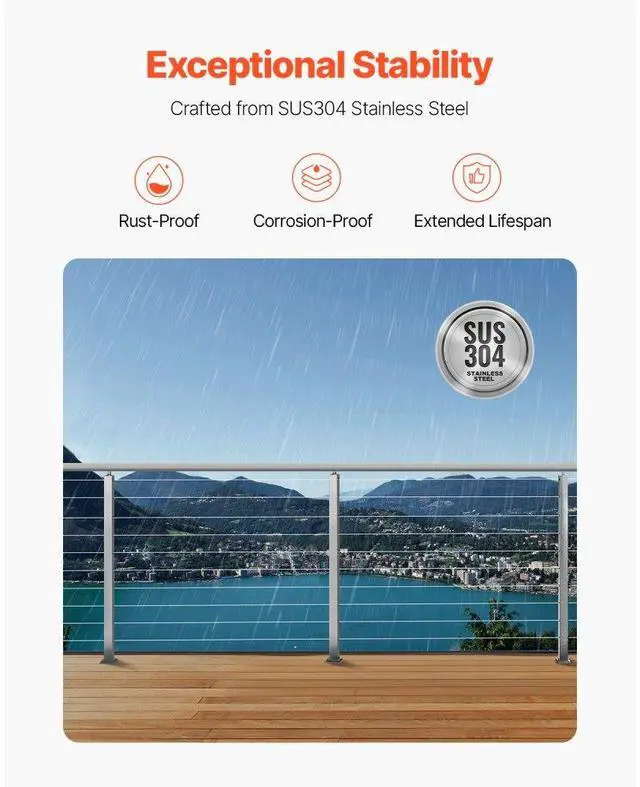Cable Railing Post 36x1x2 In with Pre-Drilled Holes 1JZLGZXYS914I4BDB001V0