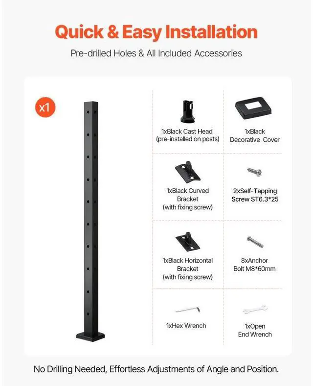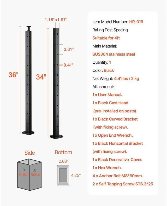 Number of Holes: 10,Net Weight(Include Accessories): 4.4 lbs/2kg (±3%),Color: Black,Item Model Number: HR-016,Quantity: 1,Railing Post Spacing: Suitable for up to 4ft,Main Material: SUS304 Stainless Steel