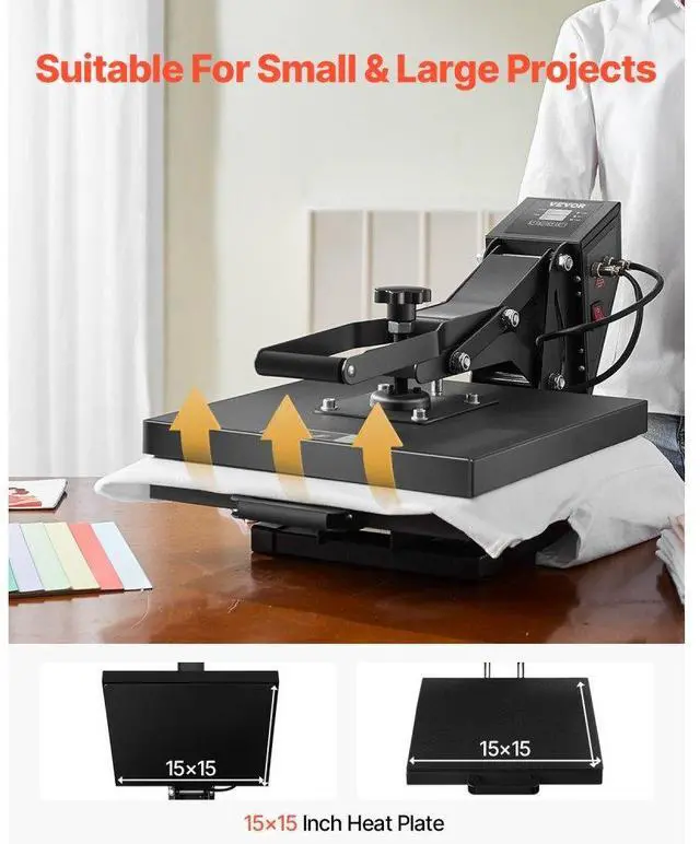 VEVOR Heat Press Machine 15 x 15 inch Sublimation Printer Transfer for DIY T-shirt