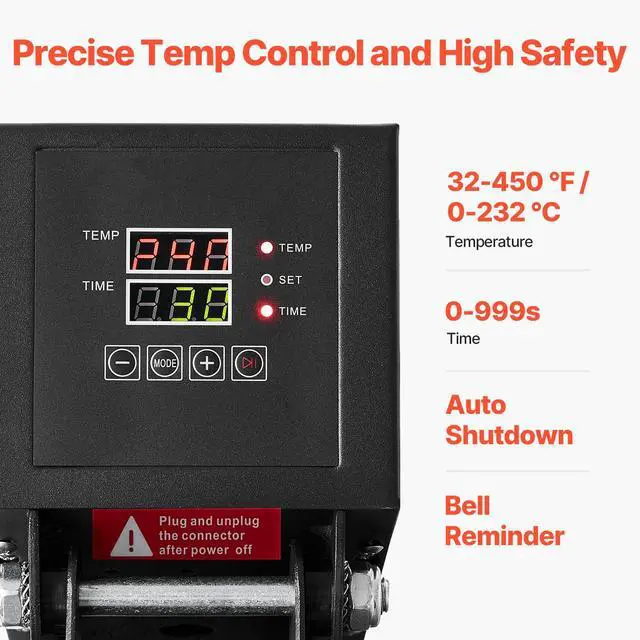 Heating Plate Size: 15 x 15 in / 380 x 380 mm,Time Range: 0-999s,Item Model Number: TL1123,Temperature Range: 32-450 / 0-232 ,Net Weight: 41.4 lb / 18.8 kg,Power: 1200W