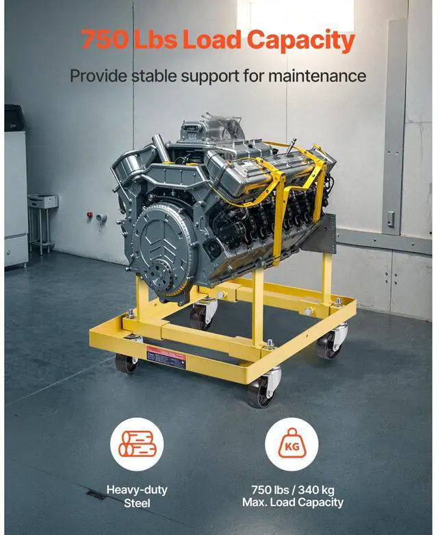 Engine Stand 750 LBS Adjustable Motor Hoist Dolly with 4-Caster Heavy-Duty Steel