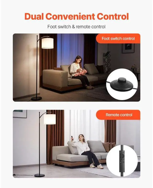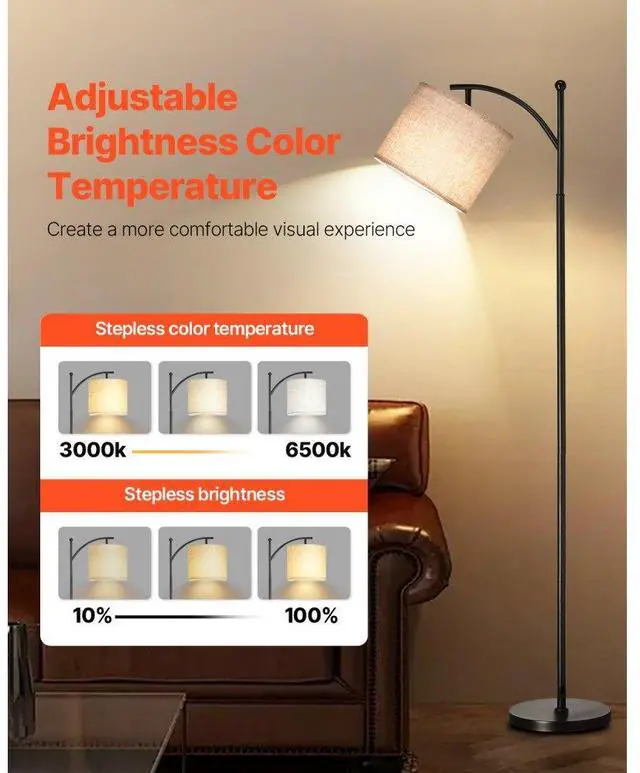 VEVOR Floor Lamp Dimmable Color Temperature Living Room Lamp with Remote Control