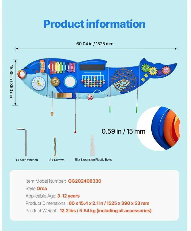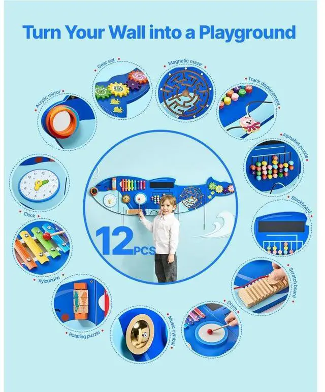 Orca Activity Wall Busy Board Panels 12 Activities Sensory Wall Panel