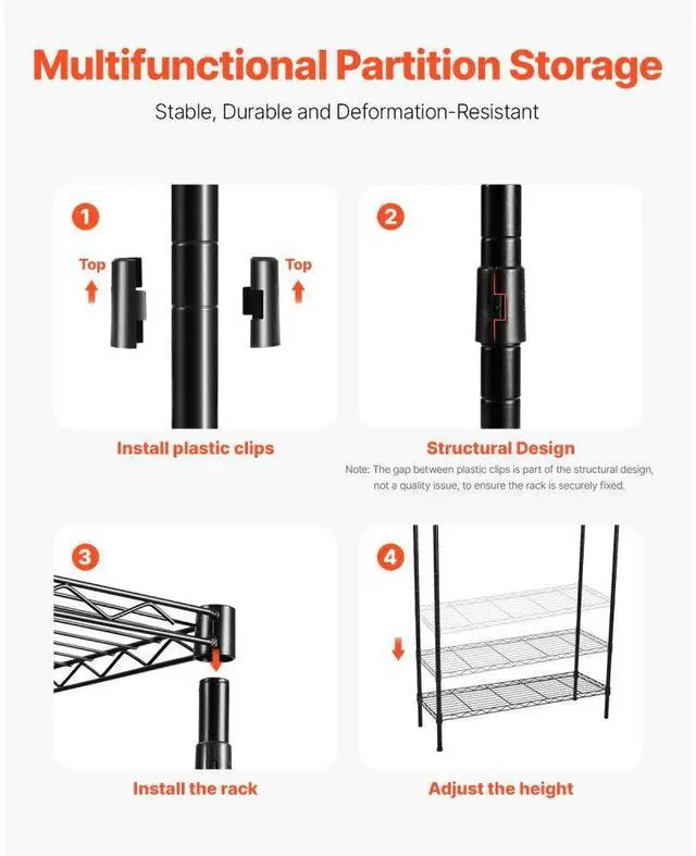 Total Width: 63.39 in / 1610 mm,Storage Layers: 6 layers,Single Cone 4 Hooks Capacity: 22 lbs / 10 kg each,Columns: 2 columns,Depth: 13.4 in / 340 mm; 21.9 in / 555 mm,Total Height: 77.36 in / 1965 mm,Hanging Rod Capacity: 11 lbs / 5 kg each,Shelf Mesh Capacity: 44 lbs / 20 kg each,Item Model Number: SHSS8234196-6B,Maximum Load Capacity: 573 lbs / 260 kg,Working Load Capacity: 330.7 lbs / 150 kg,Net Weight: 27.78 lbs / 12.60 kg,Main Material: Carbon Steel,Washing Machine Size Fit: 29.92 in / 760 mm