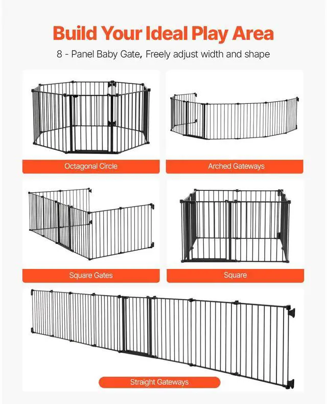 Main Color: Black,Net Weight (Including All Accessories): 28.44 lbs / 12.9 kg,Number of Panels: 8,Item Model Number: YFB1001B,Height: 28 in / 71.1 cm,Ages: From 8 months old,Width: 192 in / 487.7 cm (Excluding bracket length on both sides)