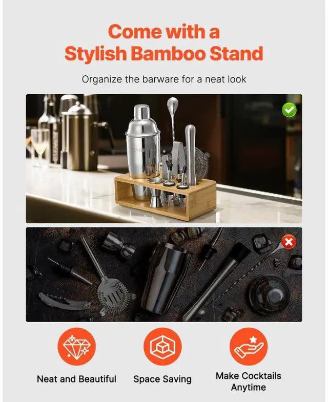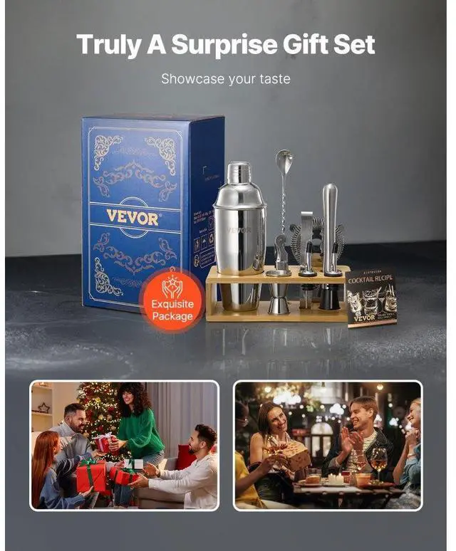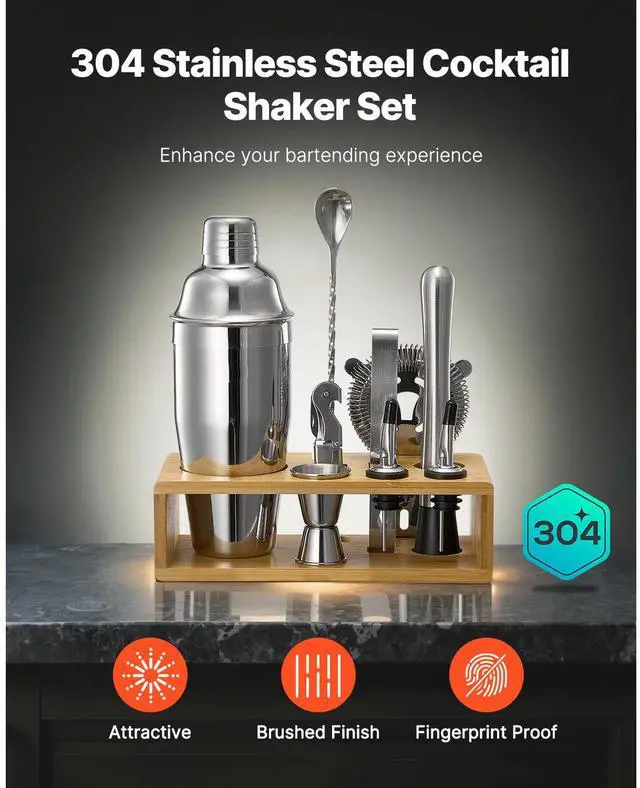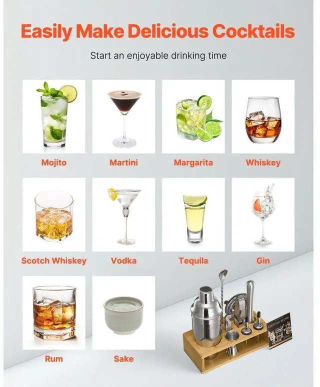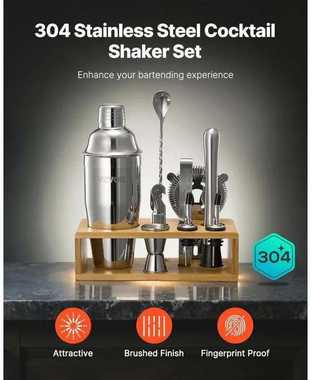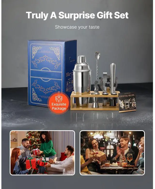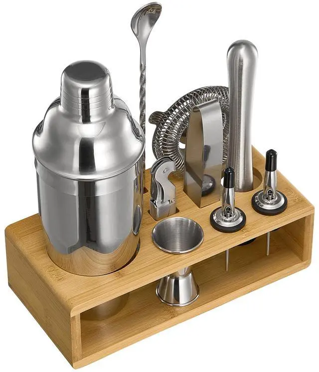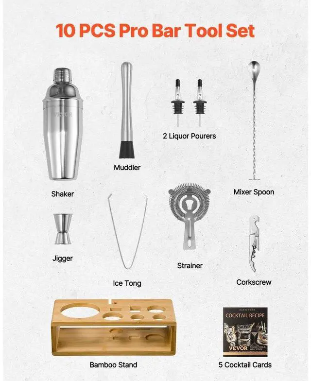 Cocktail Shaker Set 10 Pcs Bartender Kit Stainless Steel Bar Tool Set Silver