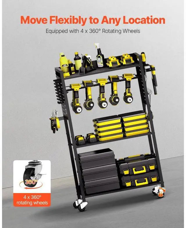 VEVOR 4-tier Tool Organizer Cart on Wheels 150 lbs Garage Cart for Workshop