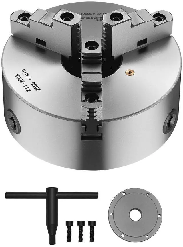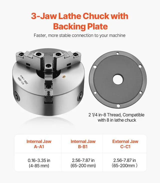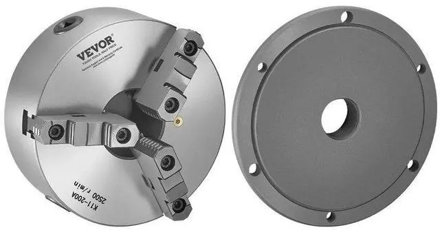 8 Inch 3-Jaw Self-Centering Lathe Chuck with 2 1/4 in-8 Threaded Backing Plate