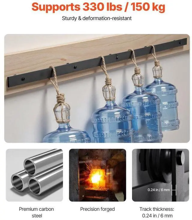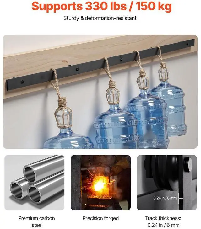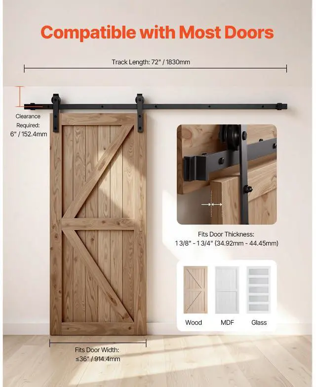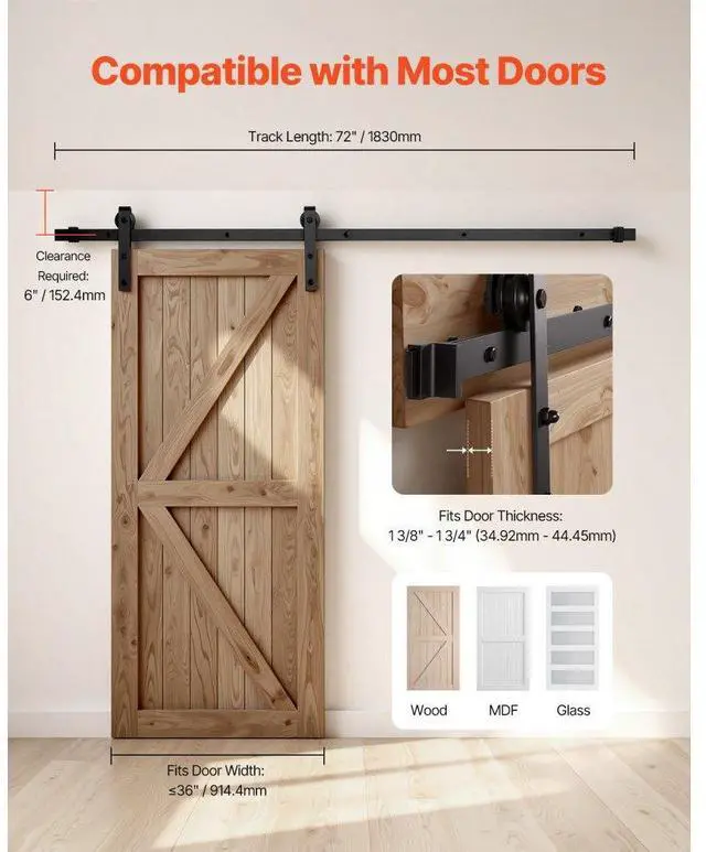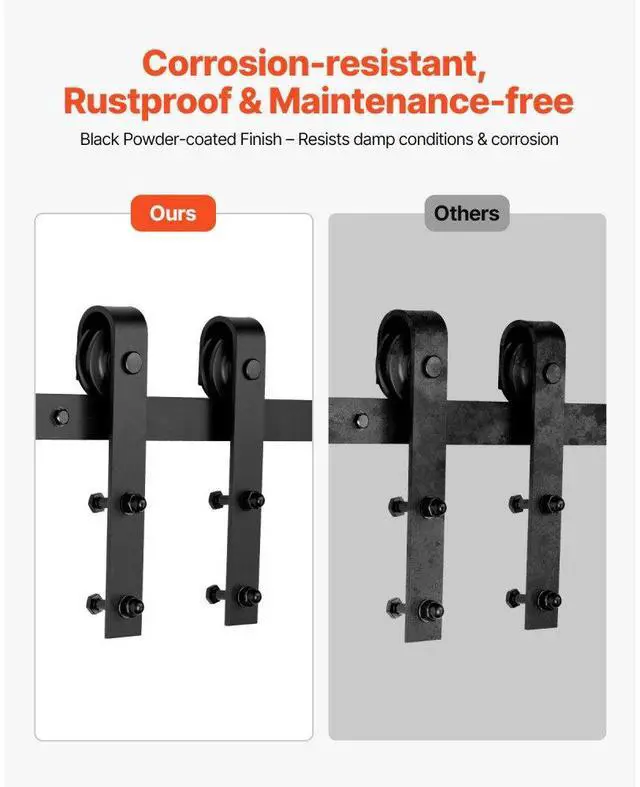 VEVOR 6FT Sliding Barn Door Hardware Kit for Single Sliding Barn Door Black