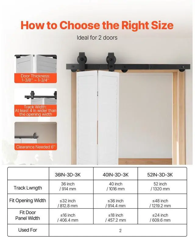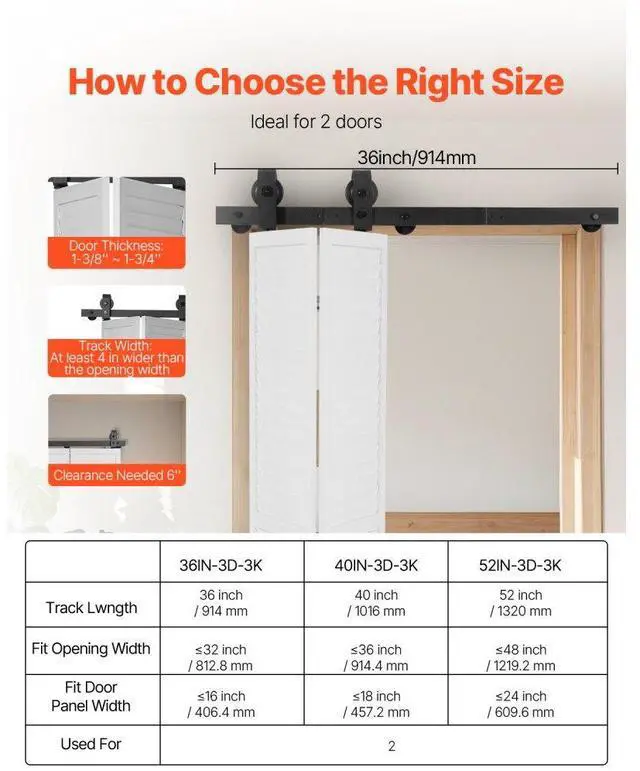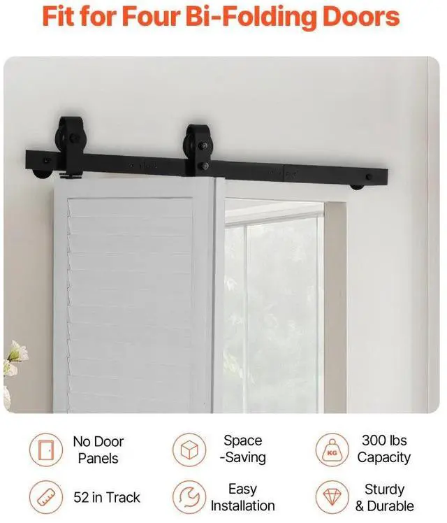 Bi-Folding Sliding Barn Door Hardware Track Kit 36" for Two 16" Doors