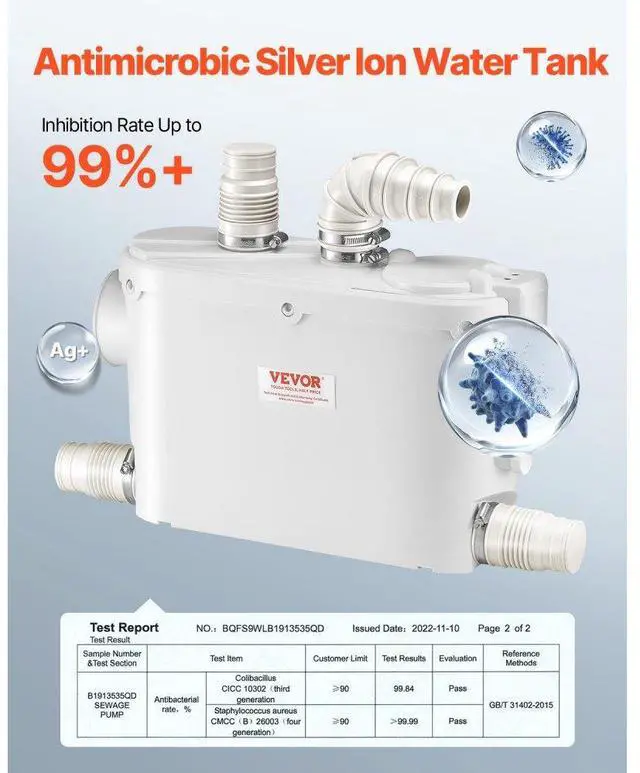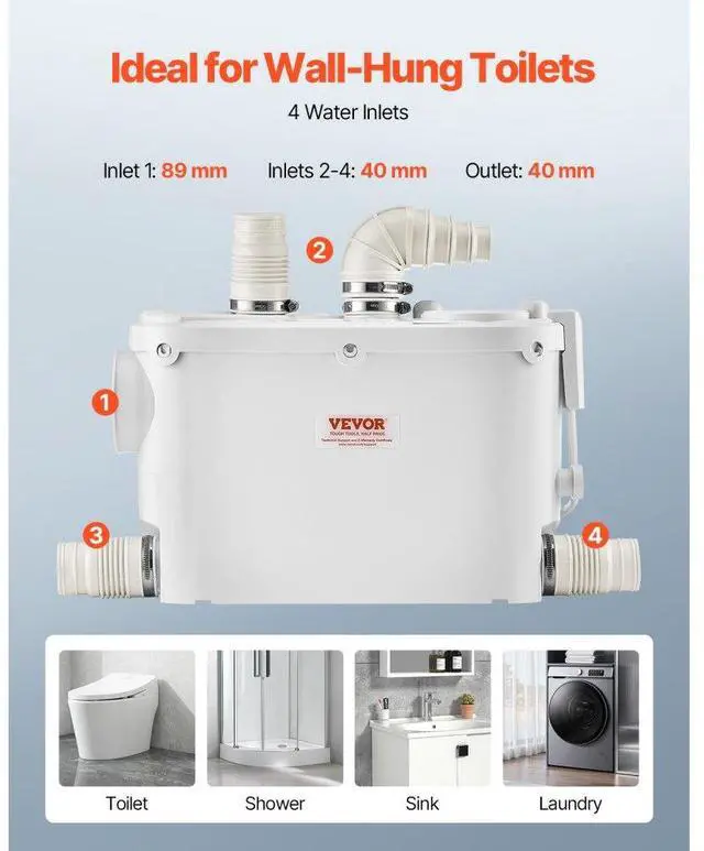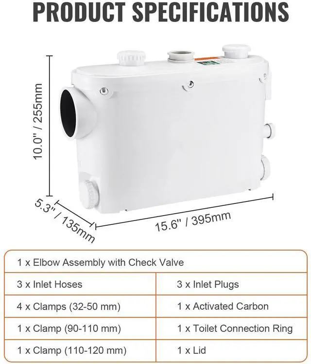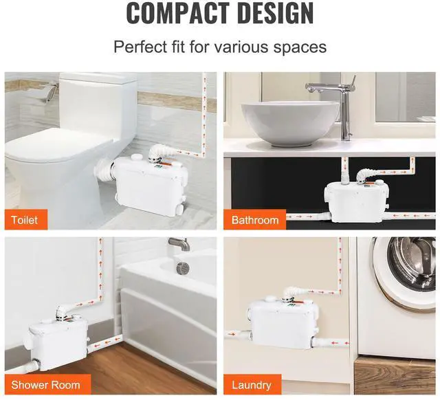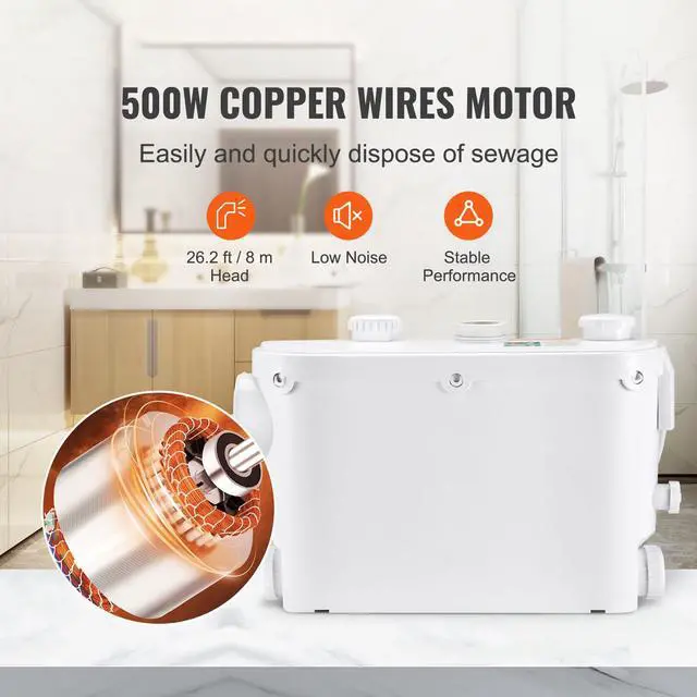 Macerator Pump 500W 29 GPM Flow 26 ft Head Lift Pump for Wall-Hung Toilet Sink