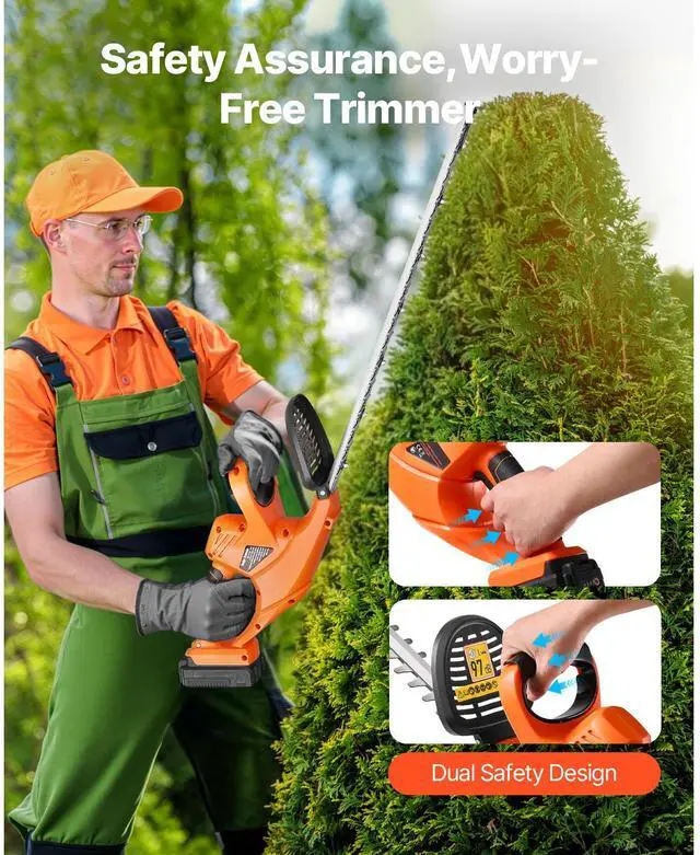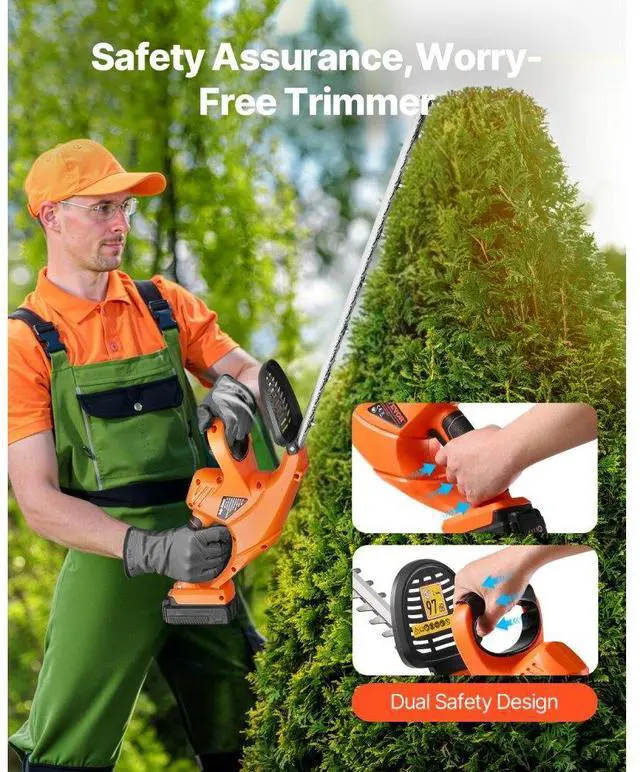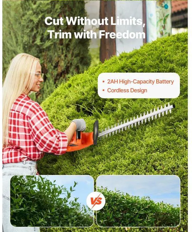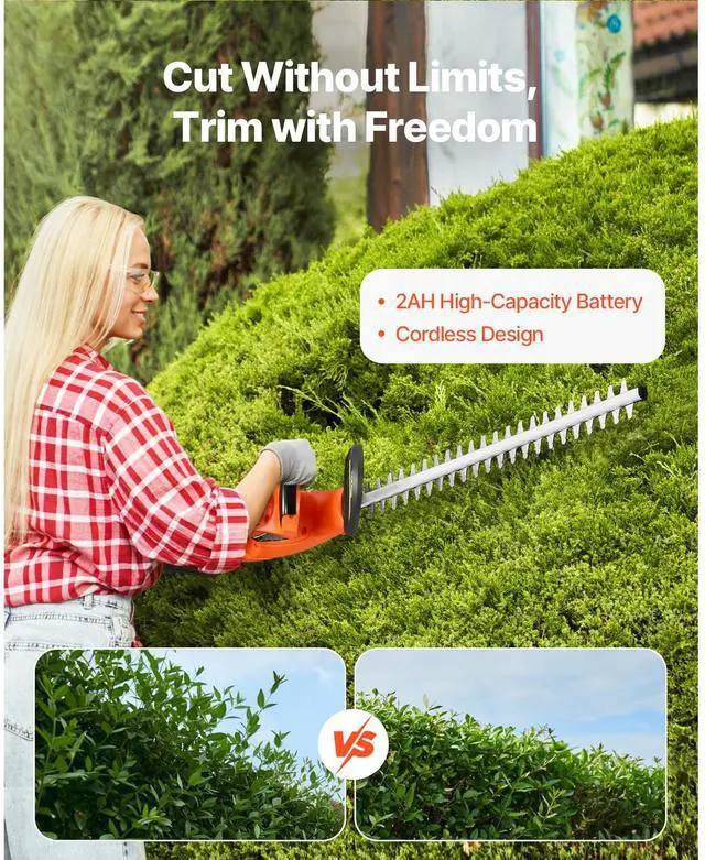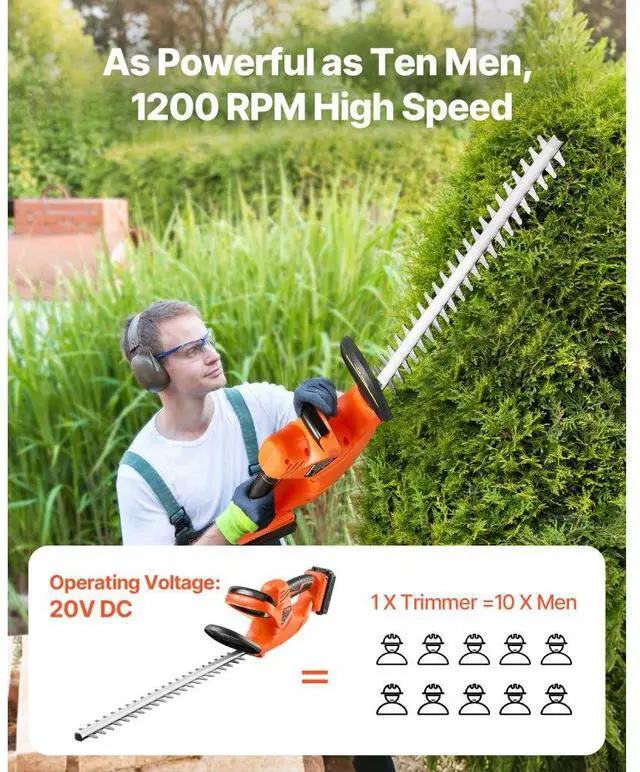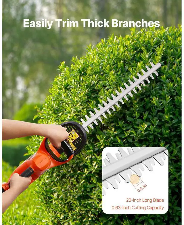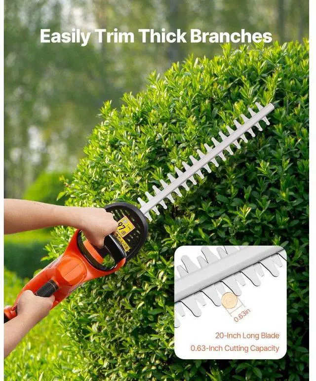 VEVOR Cordless Electric Hedge Trimmer 20V Battery 20in Dual-Action Blade Bush Cutter