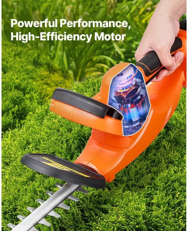 • Cordless Electric Hedge Trimmer 20V Battery 20in Dual-Action Blade Bush Cutter