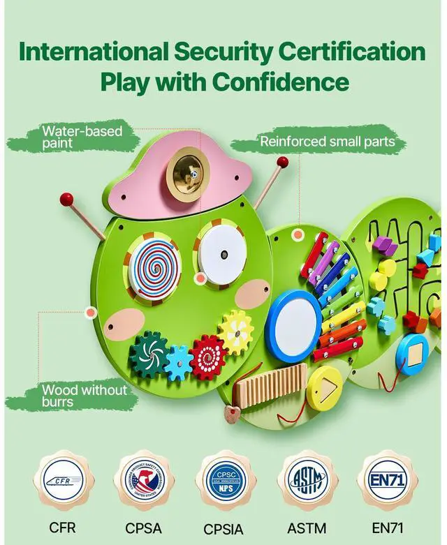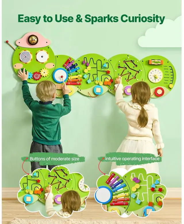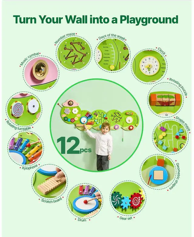 VEVOR Caterpillar Activity Wall Busy Board Panels 12 Activities Sensory Wall Toy