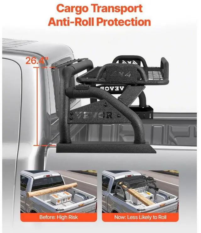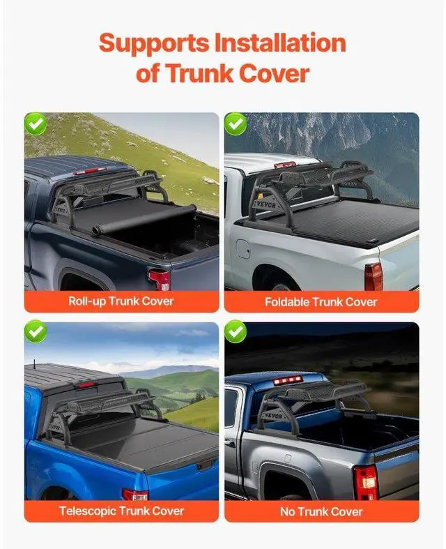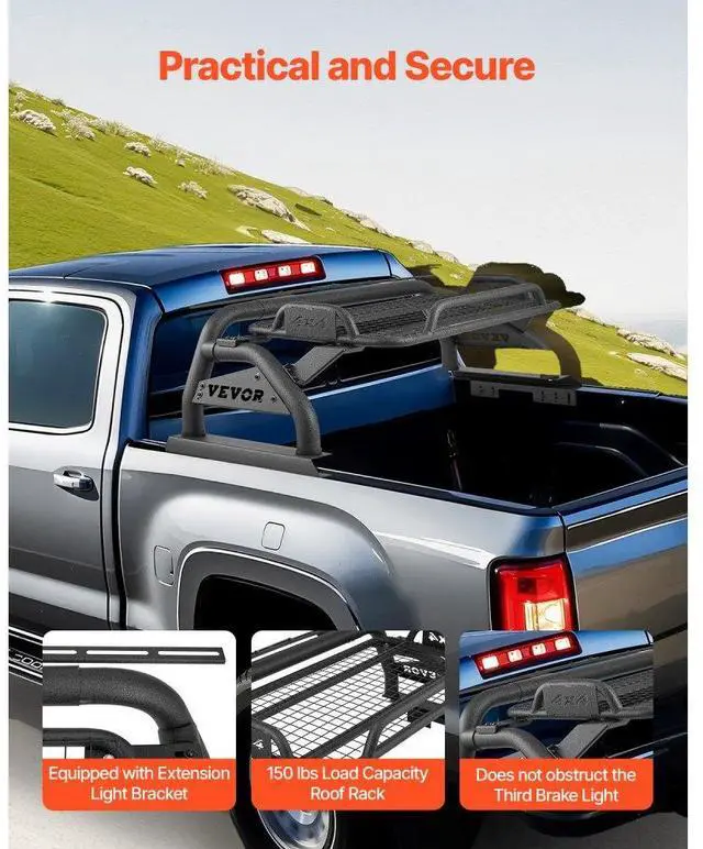 Truck Bed Roll Bar Universal Chase Rack with Rack for Full-Size Pickup