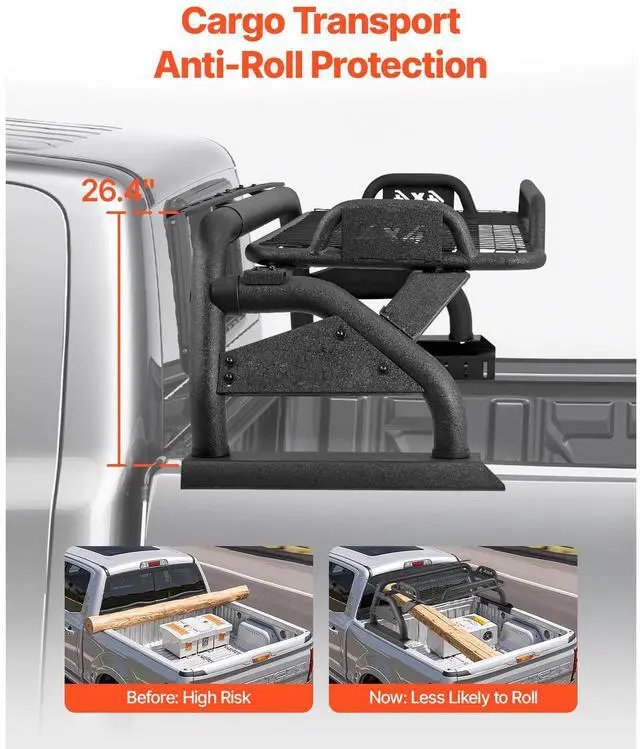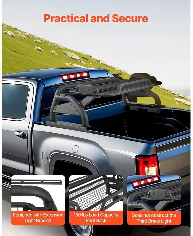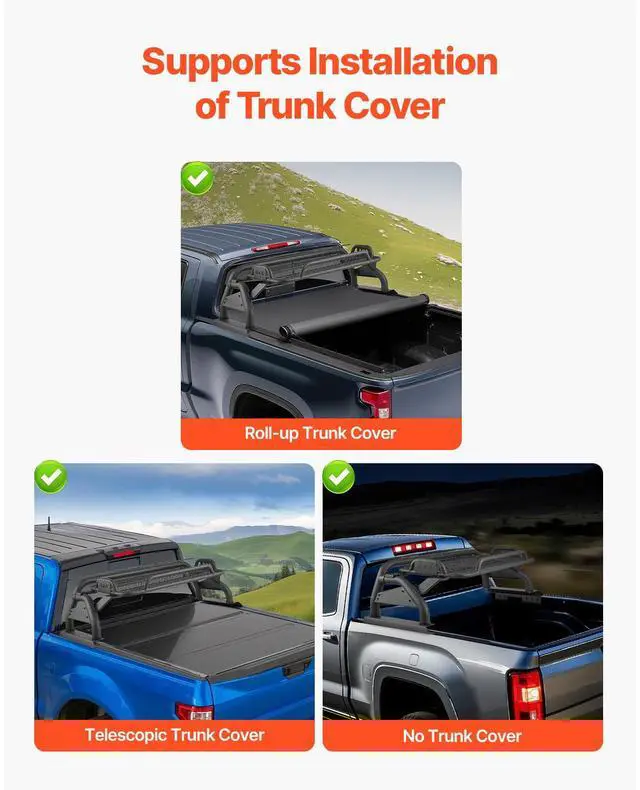 Truck Bed Roll Bar Universal Chase Rack with Rack for Full-Size Pickup