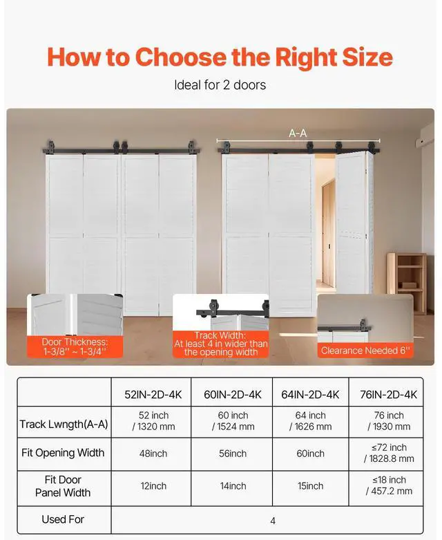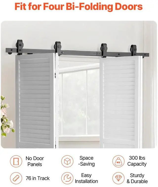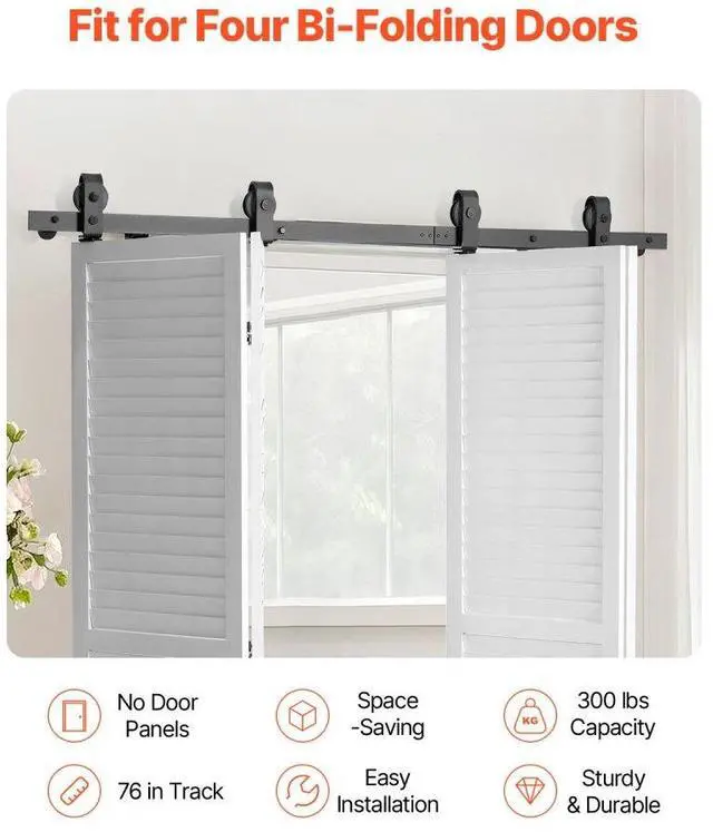 Bi-Folding Sliding Barn Door Hardware Track Kit 76" for Four 18" Doors