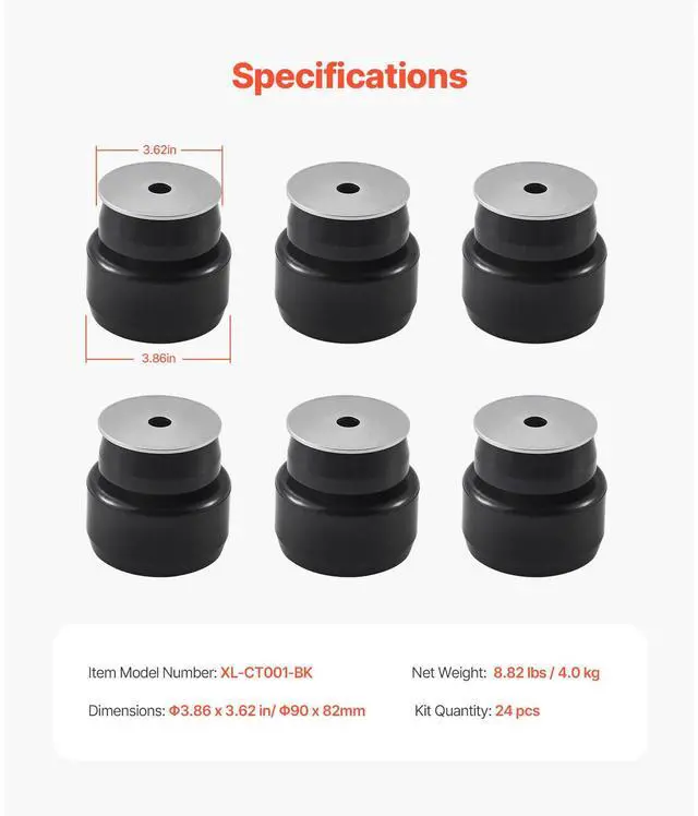 Compatible with: 1999-2014 Chevy Silverado & Sierra 1500/2500,Color: Black,Item Model Number: XL-CT001-BK,Dimensions: 3.86 x 3.62 in / 90 x 82mm,Quantity: 24,Material: Polyurethane,Net Weight: 8.82 lbs / 4.0 kg,Package Size: 7.87 x 7.87 x 7.87 in / 200 x 200 x 200mm