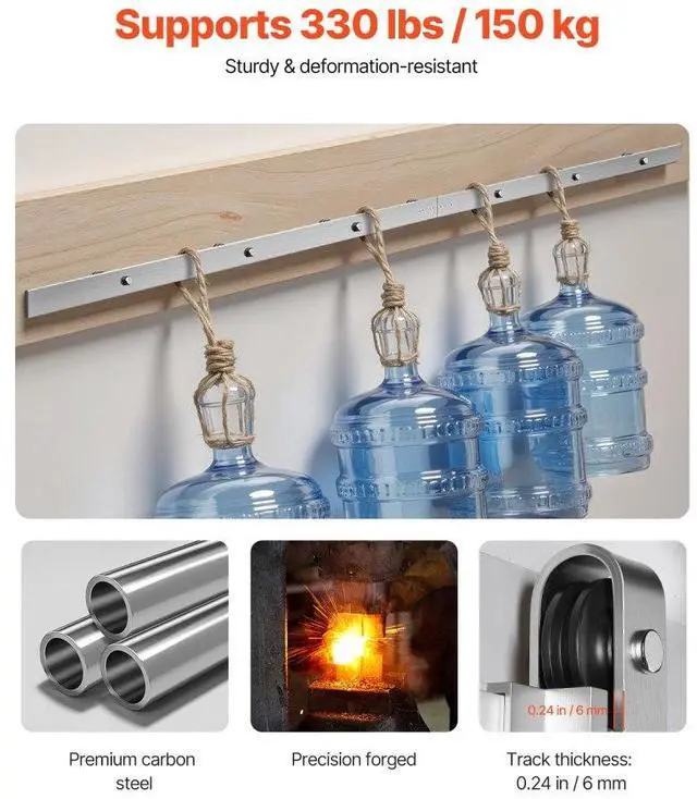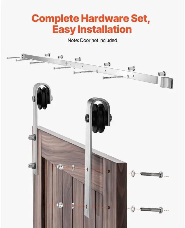 • Smooth and Quiet: Equipped with high-density thermoplastic wheels and excellent bearings, the sliding barn door operates smoothly and quietly, ensuring no disruption to your peace.