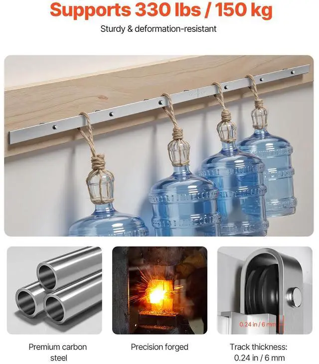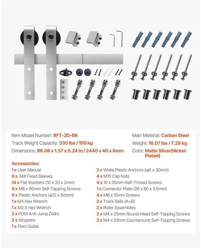 • High-end Finish: Crafted from thick carbon steel with a brushed nickel finish, this barn door hardware kit combines elegance with strength, ensuring long-lasting beauty and durability.