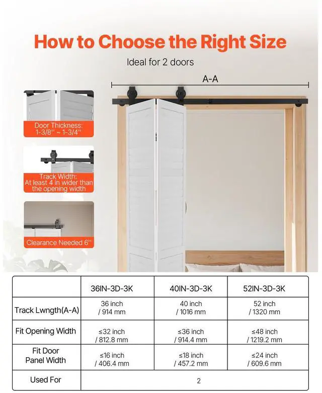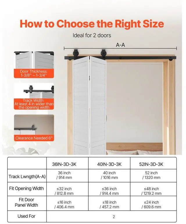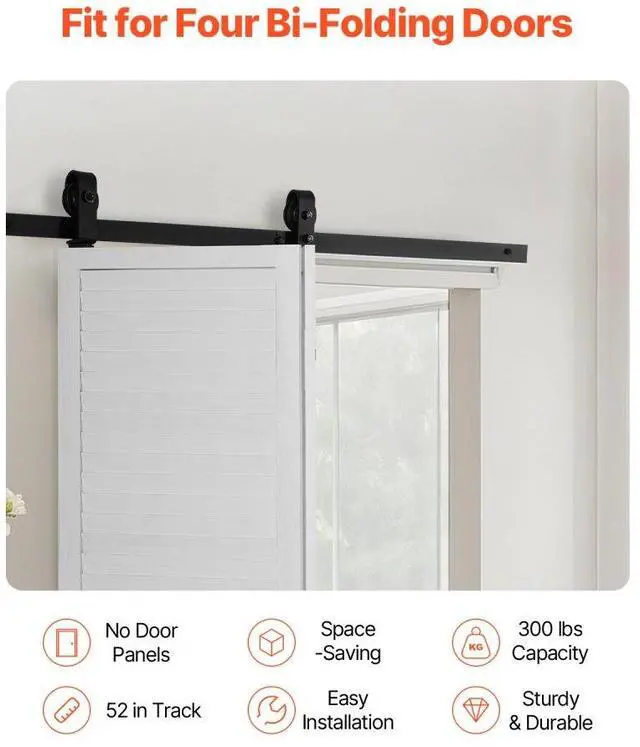 Bi-Folding Sliding Barn Door Hardware Track Kit 52" for Two 24" Doors