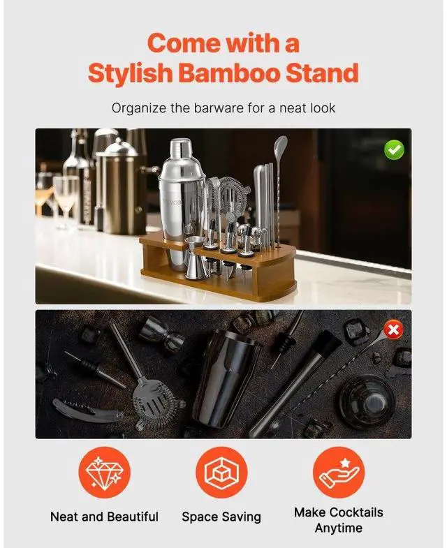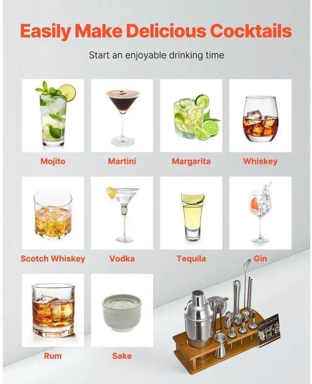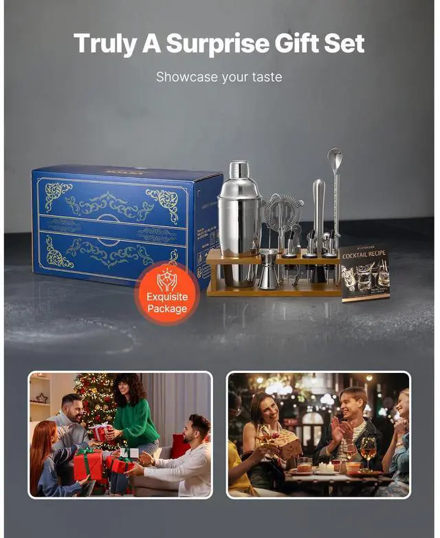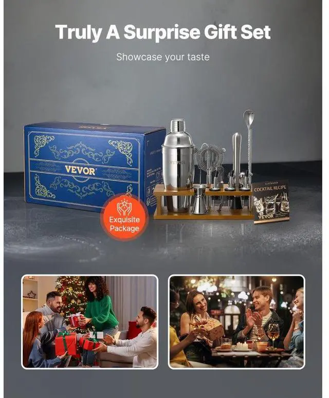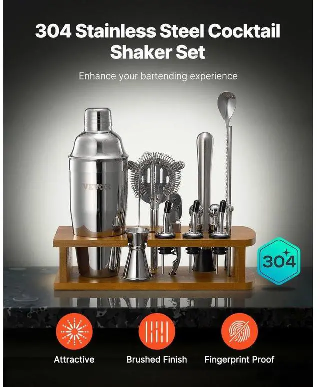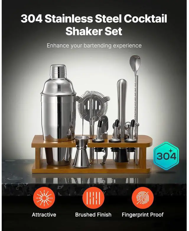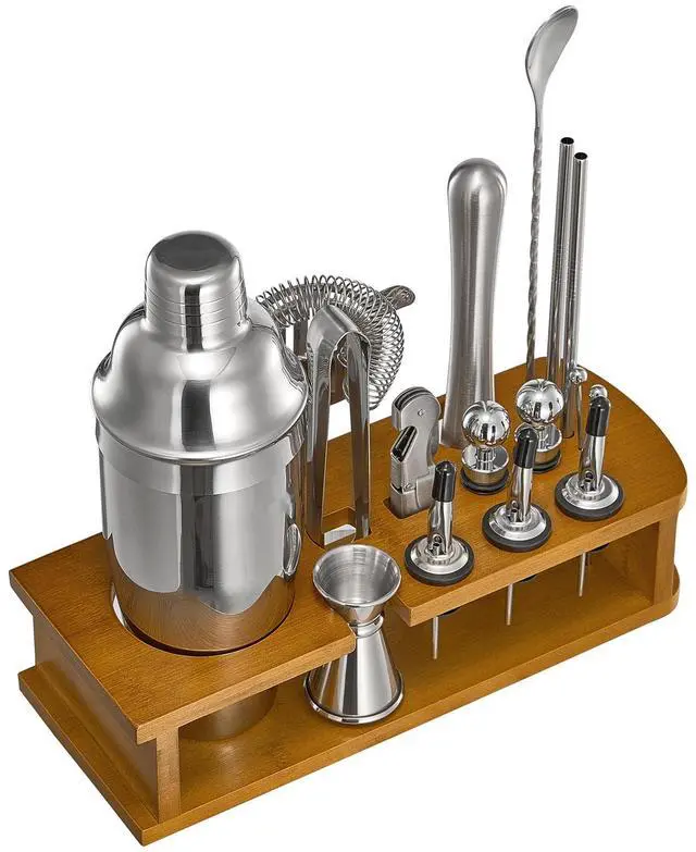 Cocktail Shaker Set 18 Pcs Bartender Kit Stainless Steel Bar Tool Set Silver