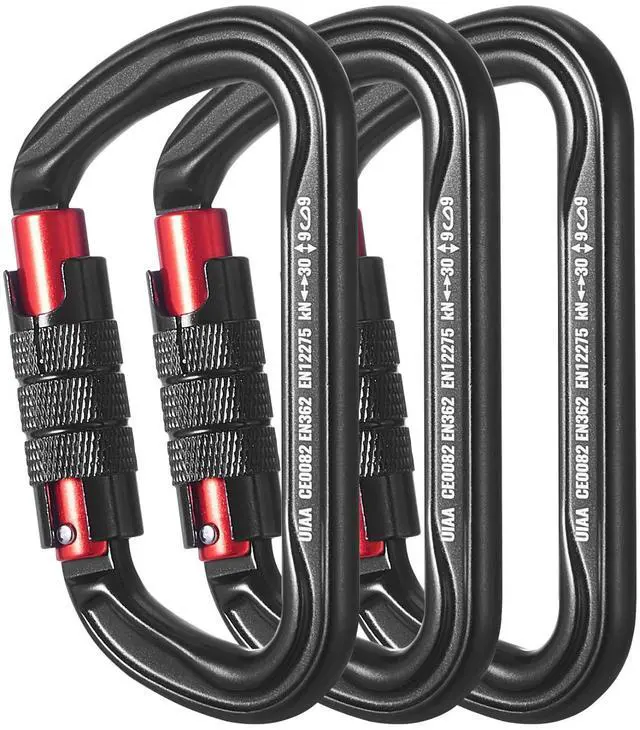 3 PCS Auto Locking Carabiner Clips Heavy Duty 30 KN for Climbing Hiking