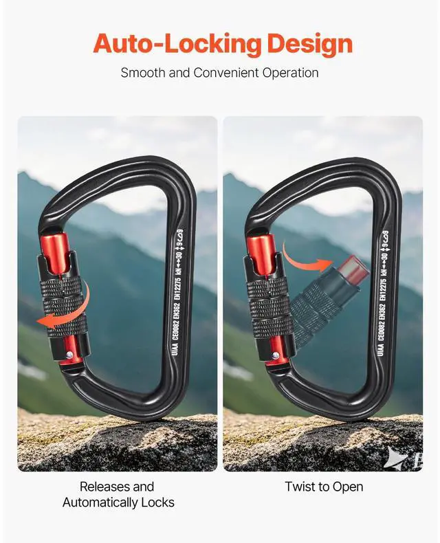 VEVOR 3 PCS Auto Locking Carabiner Clips Heavy Duty 30 KN for Climbing Hiking