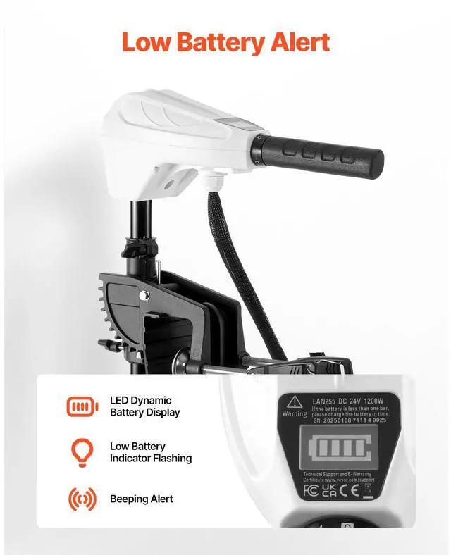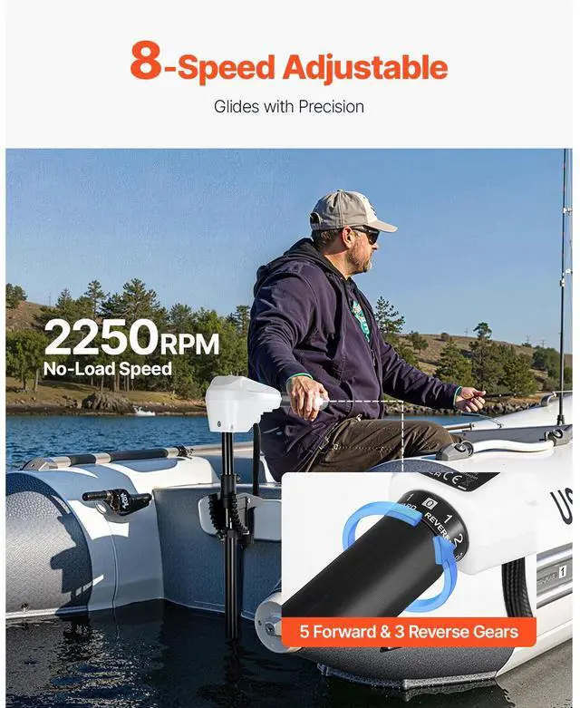 VEVOR 86lb 24V Thrust Electric Trolling Motor Saltwater Trolling Boat Engine for Kayak