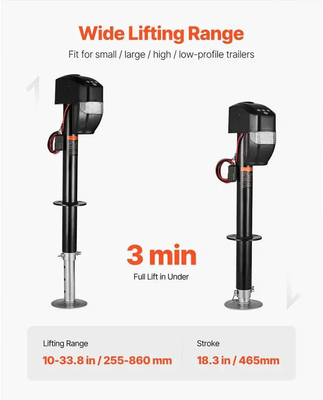 • Electric Trailer Jack 5000 lbs Power Tongue Jack for RV Trailer & Camper Black