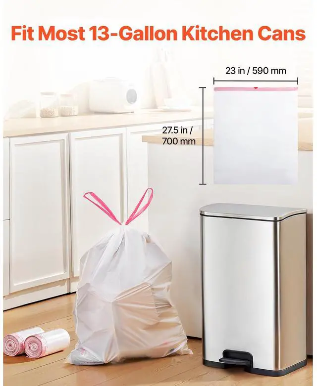 Drawstring Trash Bags Tall Kitchen Bags 13 Gallon 110 Count Garbage Bag