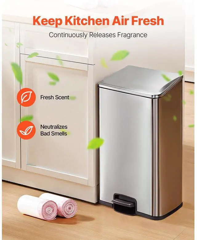 Main Color: White,Load Capacity: 13 kg / 28.7 lbs,Capacity: 13 gal,Pack Quantity: 110 counts (55 counts per roll, 2-roll pack),Single-Sided Thickness: 0.8MIL,Item Model Number: T102,Scent Type: Fresh Scent,Product Dimensions: 23 x 27.5 in / 590 x 700 mm,Net Weight: 1.95kg / 4.3 lbs,Main Material: High-Density Polyethylene (HDPE)
