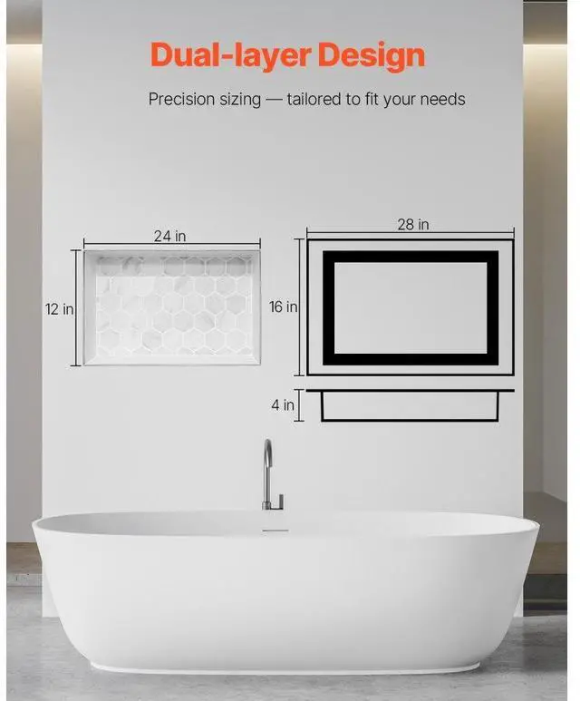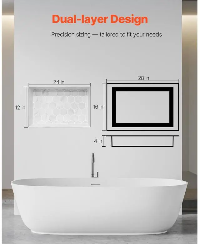 Shower Niche 16 x 28 x 4 inch Recessed Wall Shelf for Bathroom Shower